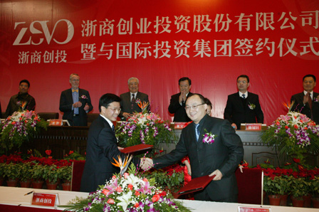 浙江紅石梁集團(tuán)副總經(jīng)理、浙商創(chuàng)投董事陳健先生(左)
