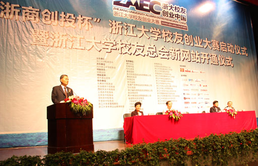 5月15日,浙商創(chuàng)投杯“浙大校友•創(chuàng)業(yè)中國(guó)”創(chuàng)業(yè)大賽啟動(dòng)儀式在浙江大學(xué)紫金港校區(qū)隆重舉行,浙江省人大副主任、浙江大學(xué)黨委書(shū)記金德水、浙江大學(xué)副校長(zhǎng)、大賽組委會(huì)主任姒健敏出席啟動(dòng)儀式。浙江大學(xué)校長(zhǎng)助理、浙江大學(xué)校友總會(huì)秘書(shū)長(zhǎng)、大賽組委會(huì)執(zhí)行主任張美鳳主持。浙商創(chuàng)投管理公司董事長(zhǎng)、浙大校友陳越孟在啟動(dòng)儀式上發(fā)表演講。