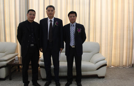 浙江大學(xué)黨委書(shū)記金德水(中)與浙商創(chuàng)投管理公司陳越孟董事長(zhǎng)(右)、行政總裁華曄宇(左)合影