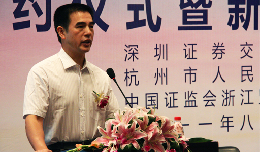 楊戌標(biāo)在簽約儀式上致辭說(shuō),這是杭州市人民政府、深圳證券交易所、中國(guó)證監(jiān)會(huì)浙江監(jiān)管局三方長(zhǎng)期友好合作的又一成果,是深入貫徹落實(shí)科學(xué)發(fā)展觀,探索科技與金融、企業(yè)與資本結(jié)合的有益嘗試,是加快推進(jìn)杭州經(jīng)濟(jì)發(fā)展方式轉(zhuǎn)變、推進(jìn)產(chǎn)業(yè)轉(zhuǎn)型升級(jí)和區(qū)域金融中心建設(shè)的重要舉措。楊戌標(biāo)指出,在杭州推進(jìn)科學(xué)發(fā)展、推進(jìn)轉(zhuǎn)型升級(jí)和創(chuàng)業(yè)創(chuàng)新的歷史進(jìn)程中,離不開(kāi)資本市場(chǎng)的強(qiáng)有力支持。企業(yè)上市(杭州)培育基地的組建和運(yùn)行,將為我市乃至浙江、長(zhǎng)三角企業(yè)上市發(fā)展,提供更為高效、便捷、權(quán)威的服務(wù)平臺(tái);將為吸引企業(yè)、資本、技術(shù)、人才在杭對(duì)接和集聚,提供更為豐富的信息平臺(tái);將為民營(yíng)企業(yè)、中小企業(yè)、科技企業(yè)的創(chuàng)業(yè)創(chuàng)新,提供最為直接的發(fā)展平臺(tái)。杭州市各級(jí)各部門(mén)要充分認(rèn)識(shí)培育基地的重要性,積極落實(shí)備忘錄的各項(xiàng)條款,為基地的運(yùn)作創(chuàng)造良好條件,積極提供各項(xiàng)支持和保障。也希望深圳證券交易所、浙江監(jiān)管局在今后的工作中,更多地關(guān)注杭州,為杭州企業(yè)上市、為企業(yè)發(fā)展壯大出謀劃策,推進(jìn)各方共贏。