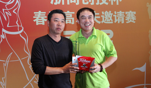 浙商創(chuàng)投董事長陳越孟(右)為連云港香溢房地產(chǎn)集團(tuán)有限公司副總經(jīng)理?xiàng)钴姡ㄗ螅╊C得“總桿季軍”