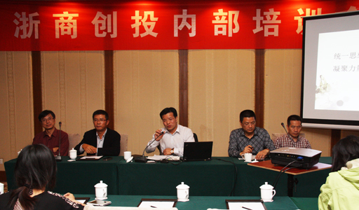 10月26日晚上,正在安徽黃山市集訓(xùn)的浙商創(chuàng)投全體員工討論會(huì)。浙商創(chuàng)投董事長陳越孟、總裁徐漢杰、執(zhí)行總裁陳勛、執(zhí)行總裁劉冬秋出席會(huì)議并先后發(fā)言,行政總裁華曄宇主持會(huì)議。