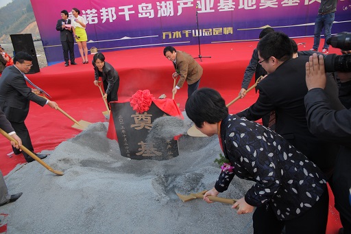 圖為陳越孟在康諾邦千島湖產(chǎn)業(yè)基地奠基儀式現(xiàn)場