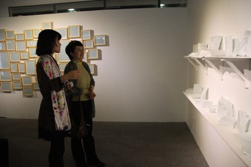 會(huì)員們首先參觀了當(dāng)代藝術(shù)家盧昊“被現(xiàn)實(shí)包裹的美麗人生”主題個(gè)展。盧昊的《風(fēng)景》、《焚》、《一平方公里》、《生活用品》、《無(wú)人的上河圖》等系列作品,無(wú)疑是最為引人關(guān)注的,這些作品以瓷片、絹本、長(zhǎng)卷、素胚為創(chuàng)作媒介,形象地展示了城市建設(shè)及城市進(jìn)程對(duì)當(dāng)代中國(guó)人生活的影響。抬頭可見的小廣告、服裝市場(chǎng)待售的服裝、超市里陳列的商品……那些現(xiàn)實(shí)社會(huì)中易讓人忽略的圖景被藝術(shù)家重新拾起。藝術(shù)家取景最常見的社會(huì)背景和生活碎片,以其獨(dú)特的視角和理念,以小見大,表現(xiàn)中國(guó)改革開放三十年的巨大變遷。