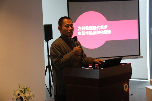 藝術(shù)展參觀完之后,聯(lián)合國(guó)教科文組織紅鉆戰(zhàn)略基金藝術(shù)總顧問、喜馬拉雅美術(shù)館創(chuàng)始館長(zhǎng)、當(dāng)代著名策展人沈其斌先生為大家?guī)?lái)一場(chǎng)關(guān)于藝術(shù)品收藏與藝術(shù)品金融化趨勢(shì)的專題講座。沈其斌先生為大家詳細(xì)講解了何謂當(dāng)代藝術(shù),通過一系列優(yōu)秀藝術(shù)作品的展示,深入淺出地分析了為何要收藏當(dāng)代藝術(shù)以及如何收藏,給在座的會(huì)員帶來(lái)了一場(chǎng)激動(dòng)人心的藝術(shù)盛宴。他認(rèn)為文化藝術(shù)品是繼房地產(chǎn)、股票之后第三個(gè)最佳的投資避險(xiǎn)工具之一,藝術(shù)金融化的趨勢(shì)正在改變中國(guó)藝術(shù)品市場(chǎng)的生態(tài)系統(tǒng)。