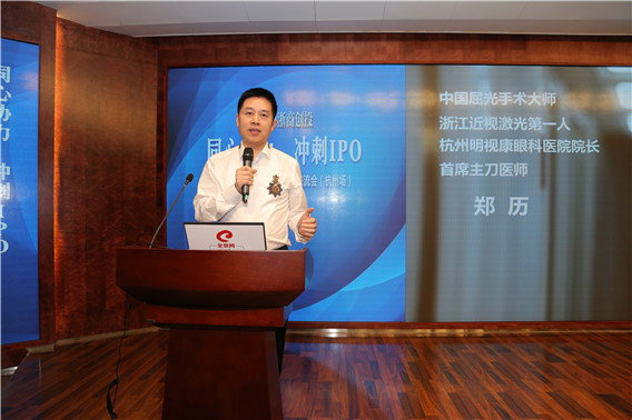 ▲圖:明視康眼科醫(yī)院院長鄭歷上臺路演