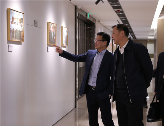 ▲圖:座談開始前,陳越孟(左)陪同陳鐵雄(右)參觀浙商創(chuàng)投