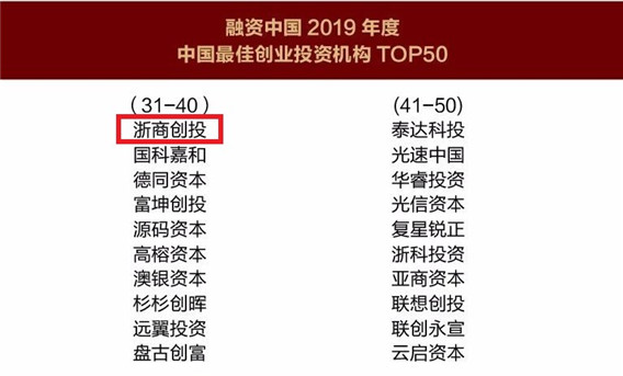 華曄宇主持了10日上午的圓桌討論環(huán)節(jié),圍繞科技創(chuàng)富,以《2020,迎接科技創(chuàng)富新時代》為主題,與各位創(chuàng)投界人士進行交流。晚上,年會正式發(fā)布了2019年度股權投資領域綜合榜單,浙商創(chuàng)投憑借良好的企業(yè)品牌形象,榮膺年度最佳創(chuàng)投機構百強榜單,排名第31位。