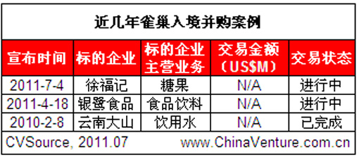作為全球最大的食品企業之一,雀巢在中國開展業務達20年之久,但在國內糖果行業的份額并不高,近期擬購徐福記60%股份的案例引起關注;而最近兩年,雀巢也已先后入股云南大山和銀鷺食品兩家國內食品飲料企業(見表2)。