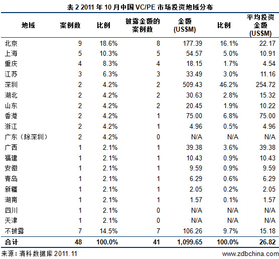 10月份共發生48起投資案例 涉及金額約11億美元