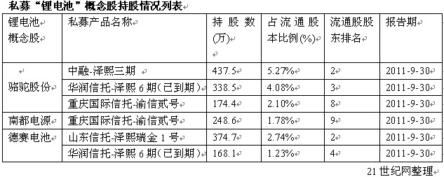 值得注意的是,2011澤熙系產品3次亮相鋰電池概念股,分別是駱駝股份、南都電源與德賽電池,由于市場熱傳“鉛酸電池準入條例”,該板塊走勢備受市場關注。