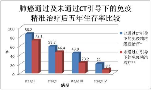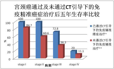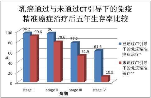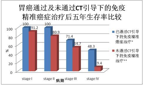 通過(guò)圖表對(duì)比幾種常見(jiàn)癌癥通過(guò)CT引導(dǎo)下的精準(zhǔn)靶向治療和未通過(guò)CT引導(dǎo)的癌癥治療的五年生存率的差別。
